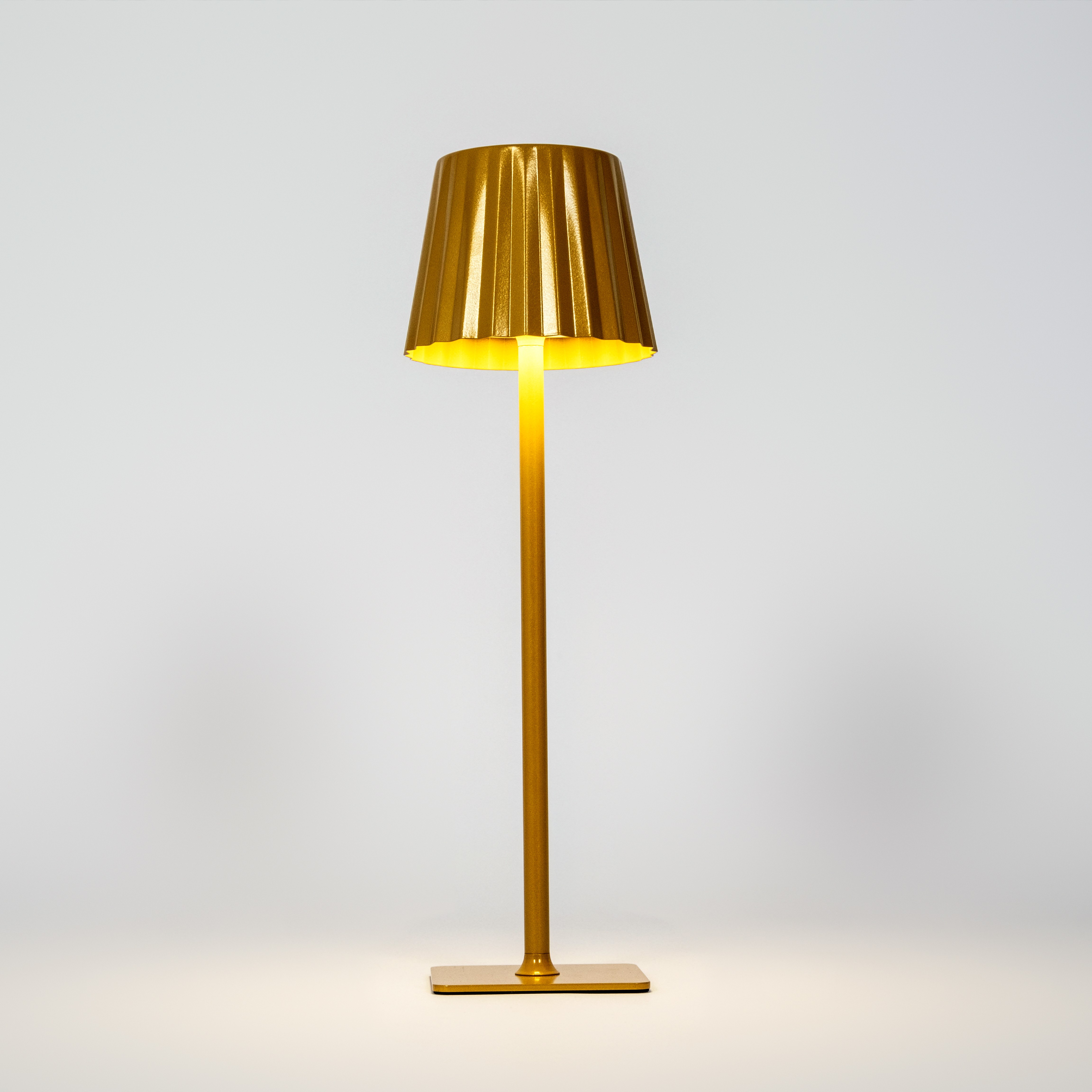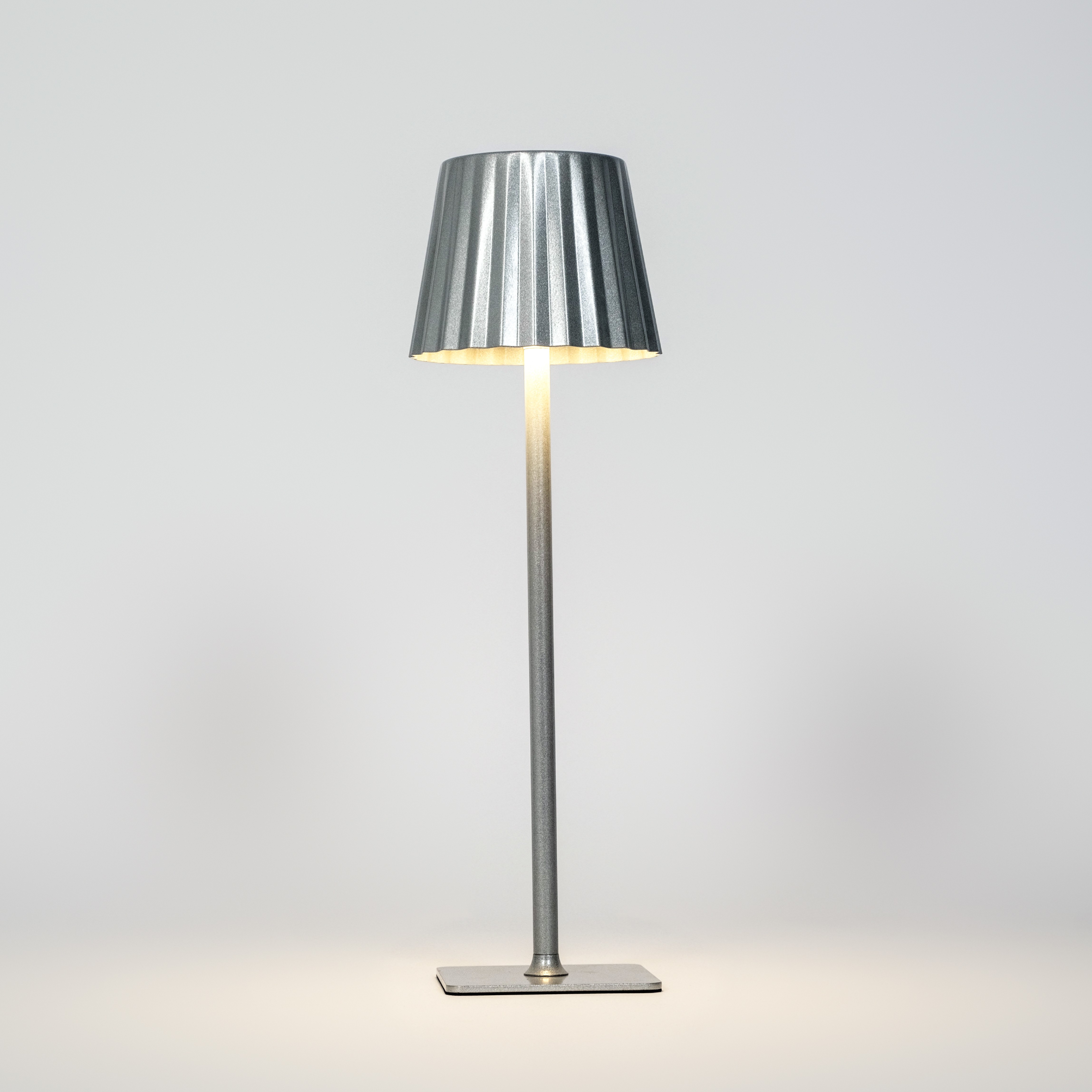Metal table lamp with dimmer function, rechargeable battery